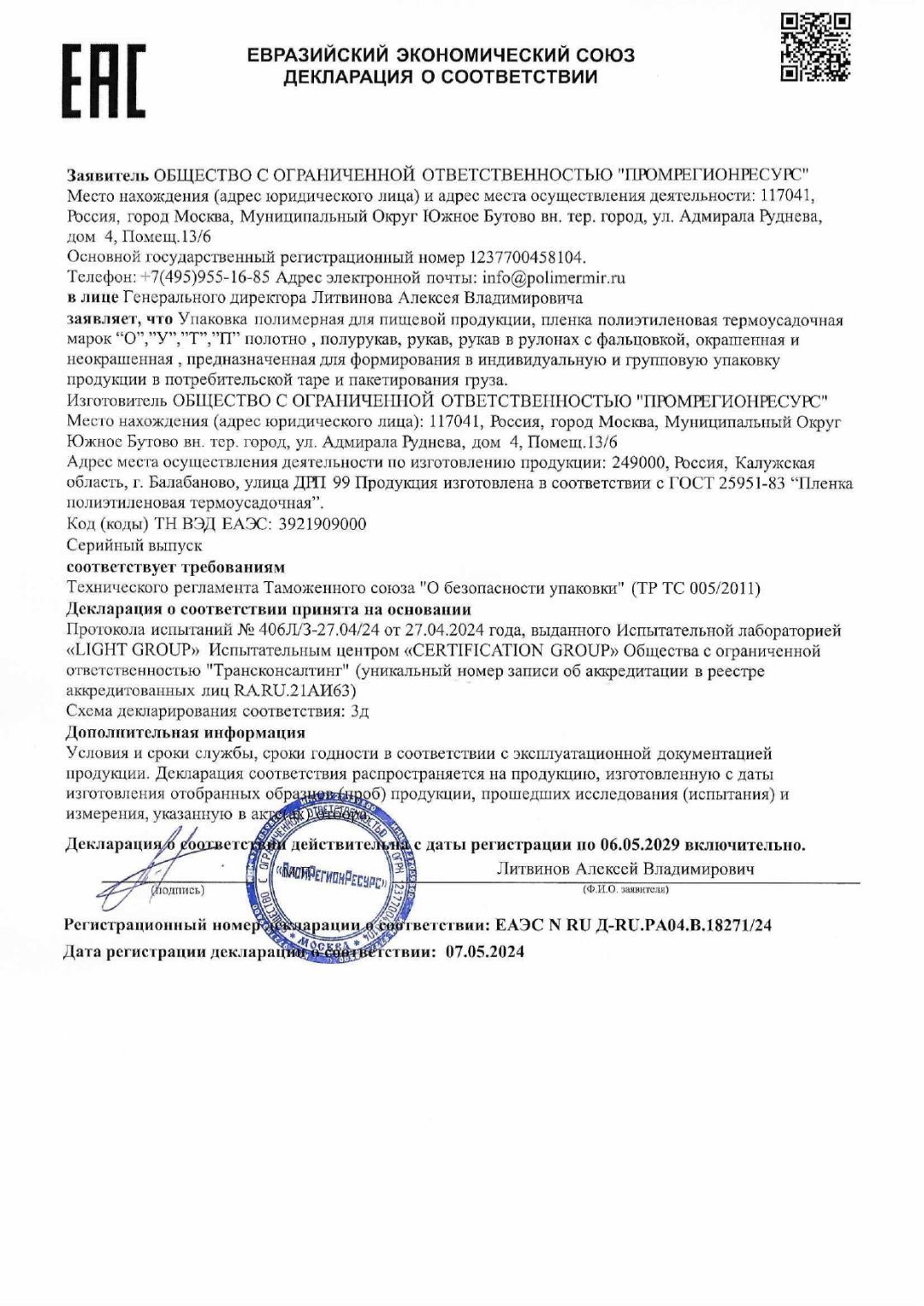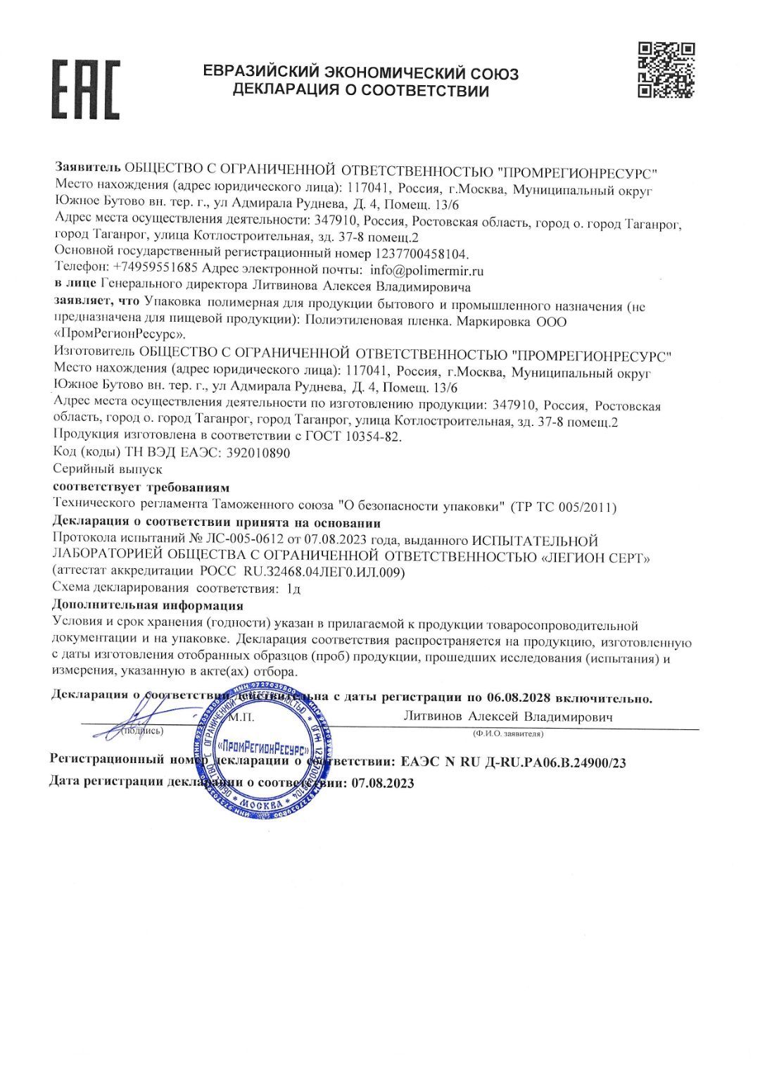Толщина: 50 мкмДобавки, стабилизаторы, цвет по желанию клиента